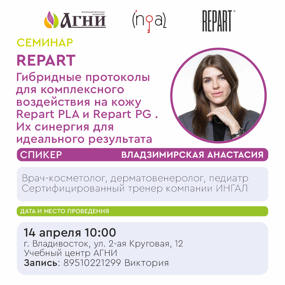 14 апреля Владивосток. Гибридные протоколы для комплексного воздействия на кожу Repart PLA и Repart PG . Их синергия для идеального результата