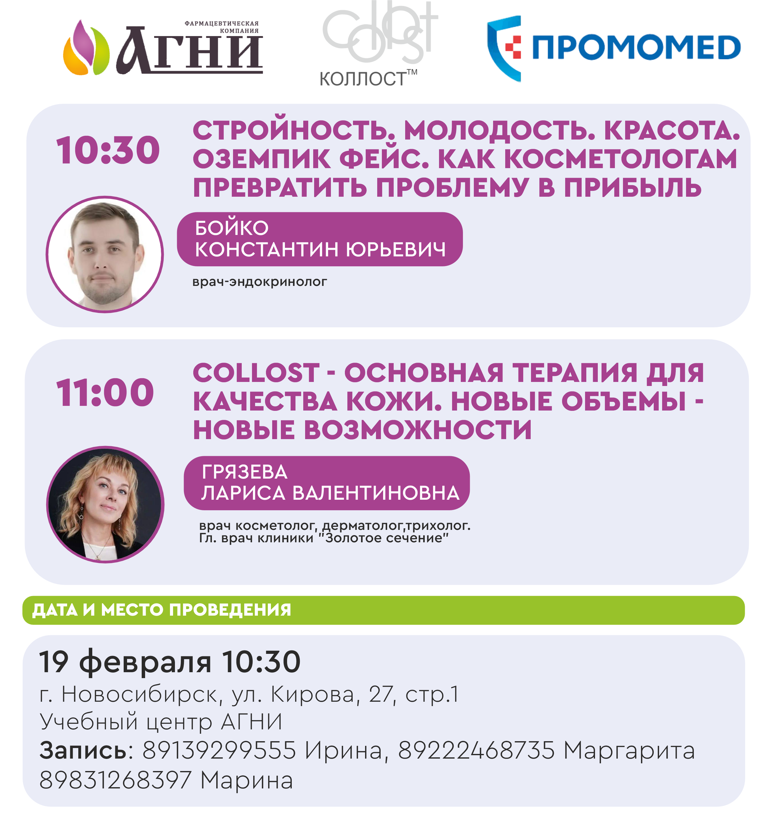 19 февраля Новосибирск. Стройность. Молодость. Красота. Оземпик фейс. Как косметологам превратить проблему в прибыль. COLLOST- основная терапия для качества кожи.Новые объемы -новые возможности