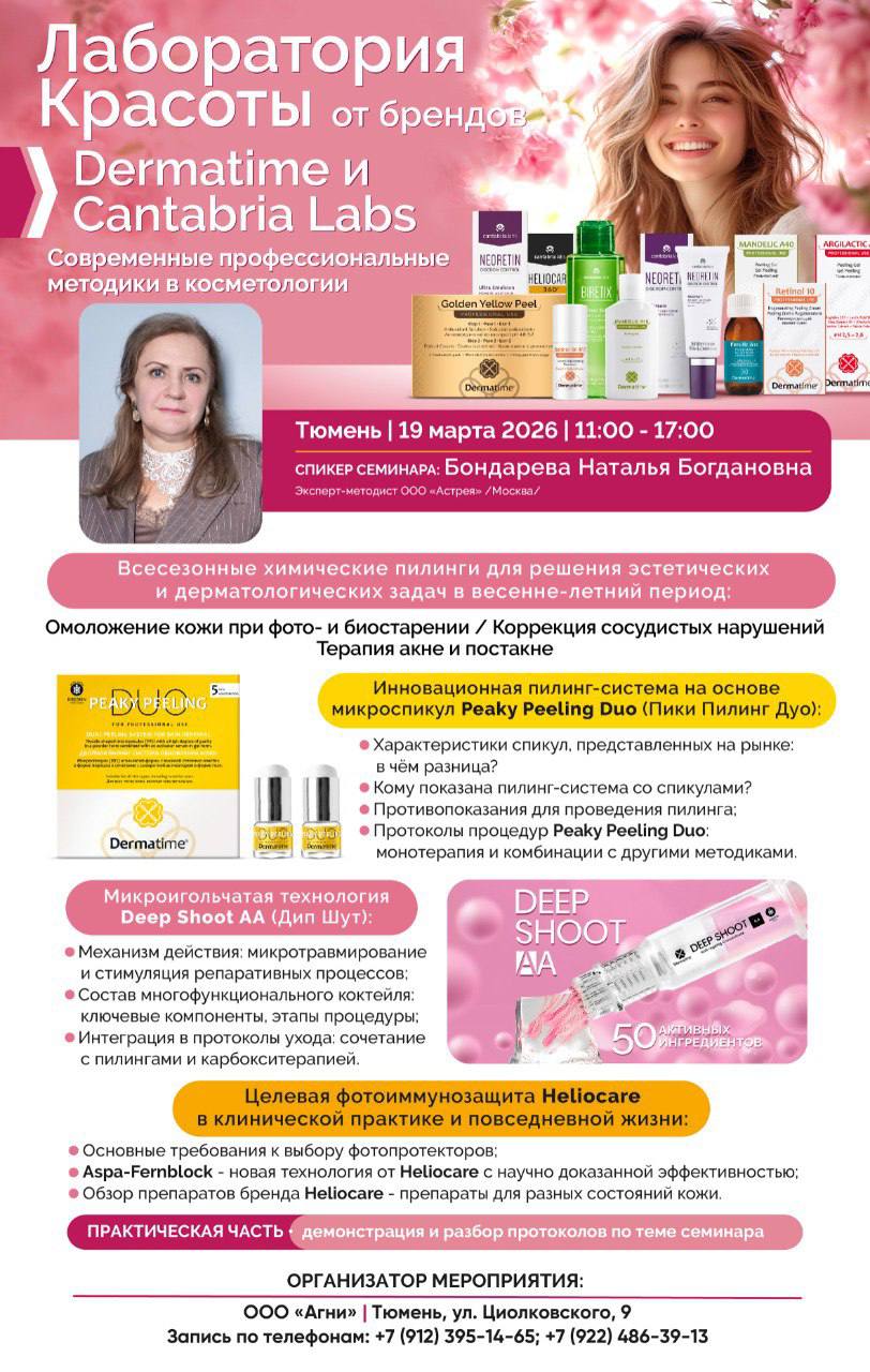 19 марта Тюмень. Всесезонные химичесике пилинги для решения эстетических и дерматалогических задач в весенне-летний период