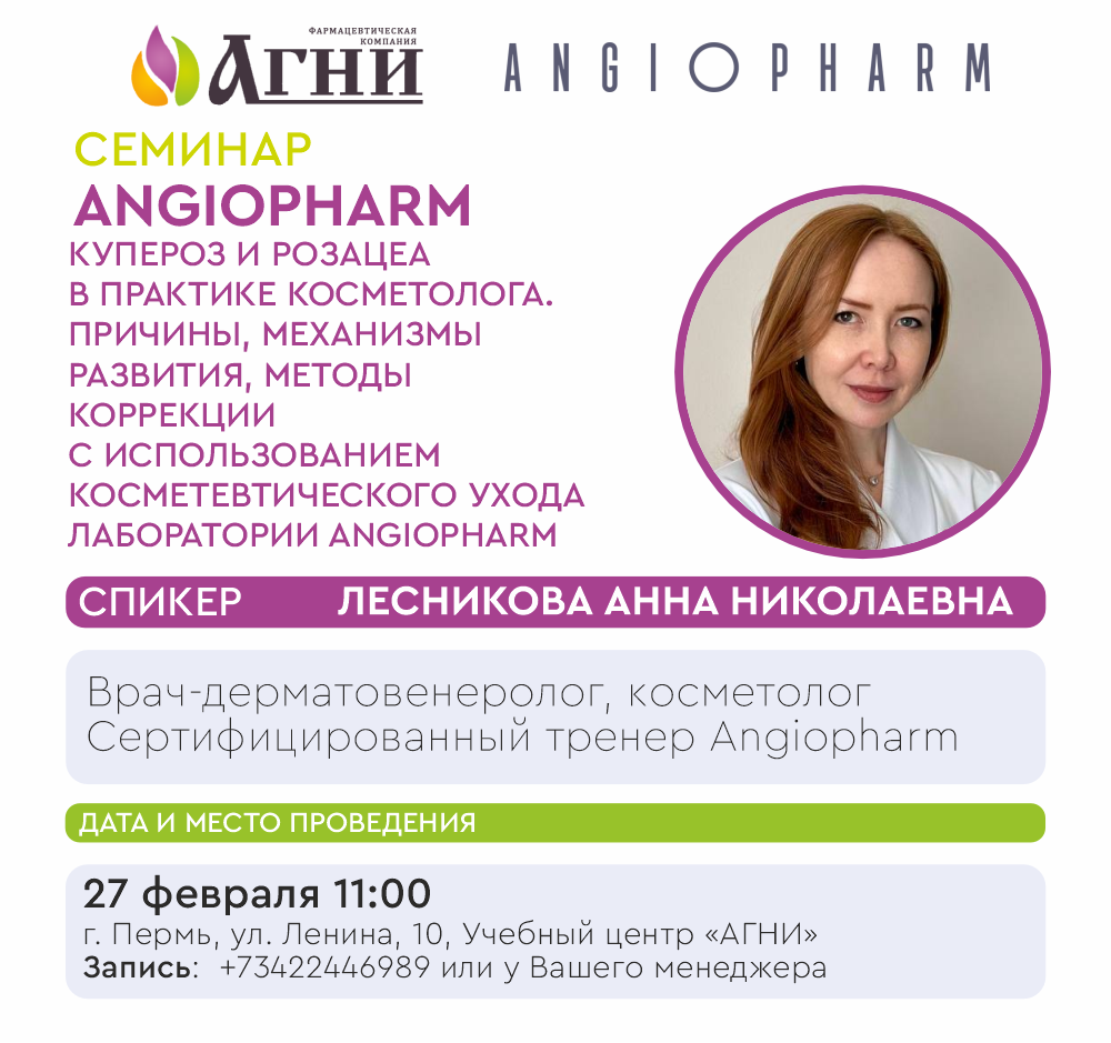 27 февраля Пермь. Купероз и розацеа в практике косметолога. Причины, механизмы развития, методы коррекции с использованием косметевтического ухода лаборатории Angiopharm