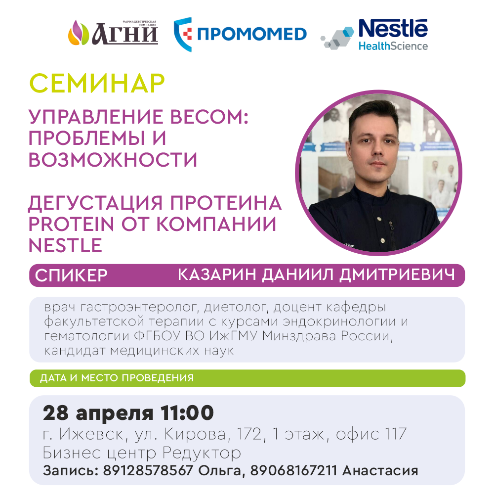 28 апреля Ижевск. Управление весом: проблемы и возможности. Дегустация протеина Protein от компании Nestle