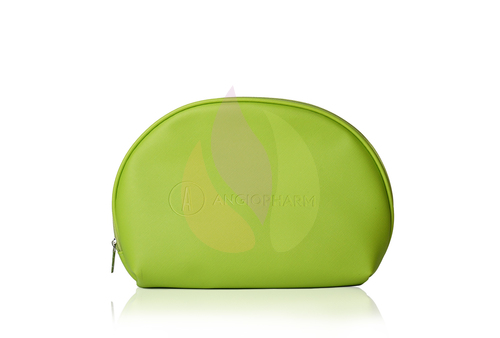 Легкая косметичка с логотипом ANGIOPHARM на молнии с одним отделением. Выполнена из экокожи с подкладом, внутренние швы обработаны и закрыты.