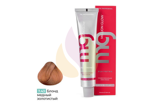 Крем-краска для волос TNL Million glow Private collection Silk protein 7.43 Блонд медный золотистый 100 мл