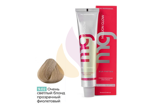 Крем-краска для волос TNL Million glow Private collection Silk protein 9.02 Очень светлый блонд прозрачный фиолетовый 100 мл