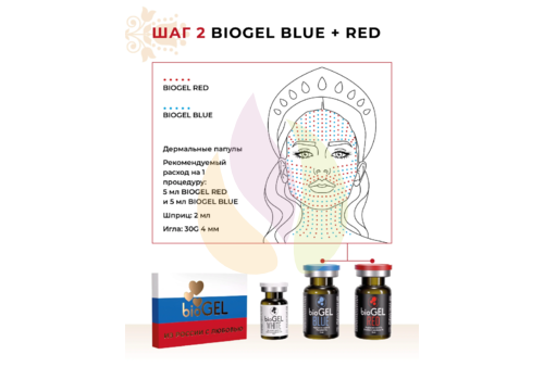 Сочетание средств BIOGEL RED и BLUE в шахматном порядке дает глубокое увлажнение, улучшение цвета лица и, главное, борется с отечностью и пастозностью.