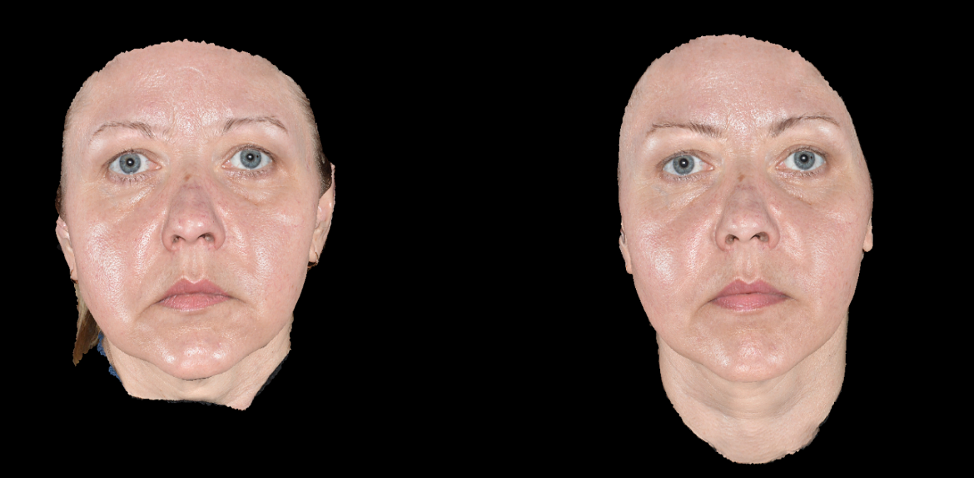 Эффективность и безопасность применения доказана исследованиями, проведенными на базе Школы профессора Юцковской. В испытаниях приняли участие 39 добровольцев, у которых были изучены количественные изменения по показателям увлажненности и эластичности кожи (аппарат диагностики кожи Multi Skin Test Center MC 1000) в результате двухкратной имплантации Repart PG по биоэстетическим точкам с интервалом в 21 день. Визуальные изменения оценивались с помощью 3D-фотодиагностики на аппарате LifeViz Quantificare. У всех испытуемых отмечались визуальные и диагностические улучшения состояния кожного покрова лица. В ходе исследования были получены следующие данные: показатели увлажненности в среднем по группе повысились на 5 пунктов, показатели эластичности – на 6–11 пунктов (рис. 2а, 2б).