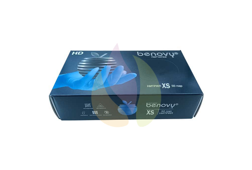 Перчатки Benovy (50 пар) нитриловые неопудренные,хлорированные (манжета с валиком) сирен.-голуб,р XS