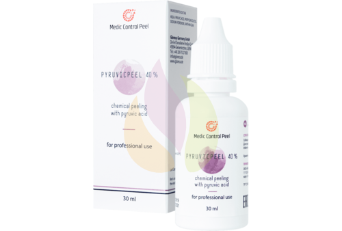 Pyruvicpeel 40% - поверхностный пилинг на основе пировиноградной кислоты обладает умеренным эксфолиирующим, а так же хорошим бактерицидным, себостатическим, камедонолитическим, антиоксидантным и депигментирующим эффектом. Hормализует процессы салоотделения и оказывает опосредованное увлажняющее действие. Благодаря этому, Pyruvicpeel 40% применяется при проблемной коже, акне, а так же для коррекции умеренно выраженных признаков увядания кожи у молодых пациентов. Препарат улучшает состояние атоничной кожи на любом участке лица и тела.