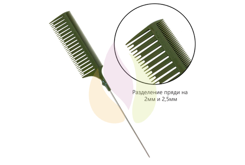 Расческа революция R-1 Gera Professional для мелирования мелких прядей, с мет. хвостиком, цвет зеленый