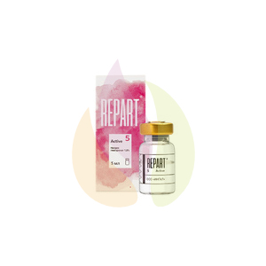 - Repart 5 Active: 1,8% раствор высокоочищенного биосинтетического нативного гиалуроната натрия бимодального состава — 1,2 МДа и 3 МДа;