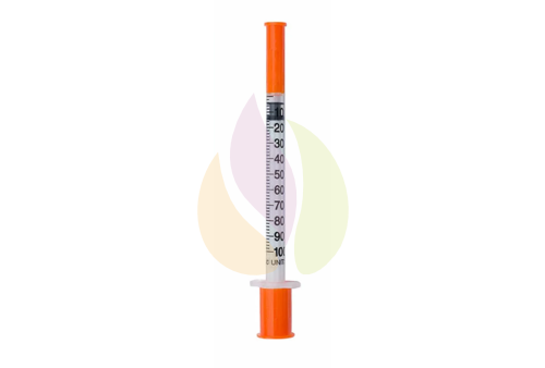 Шприц инсулиновый. Шприц с интегрированной иглой — обеспечивает отсутствие мертвого пространства, что позволяет ввести препарат с минимальными потерями по сравнению с другими инсулиновыми шприцами. Стерильный, одноразового применения.