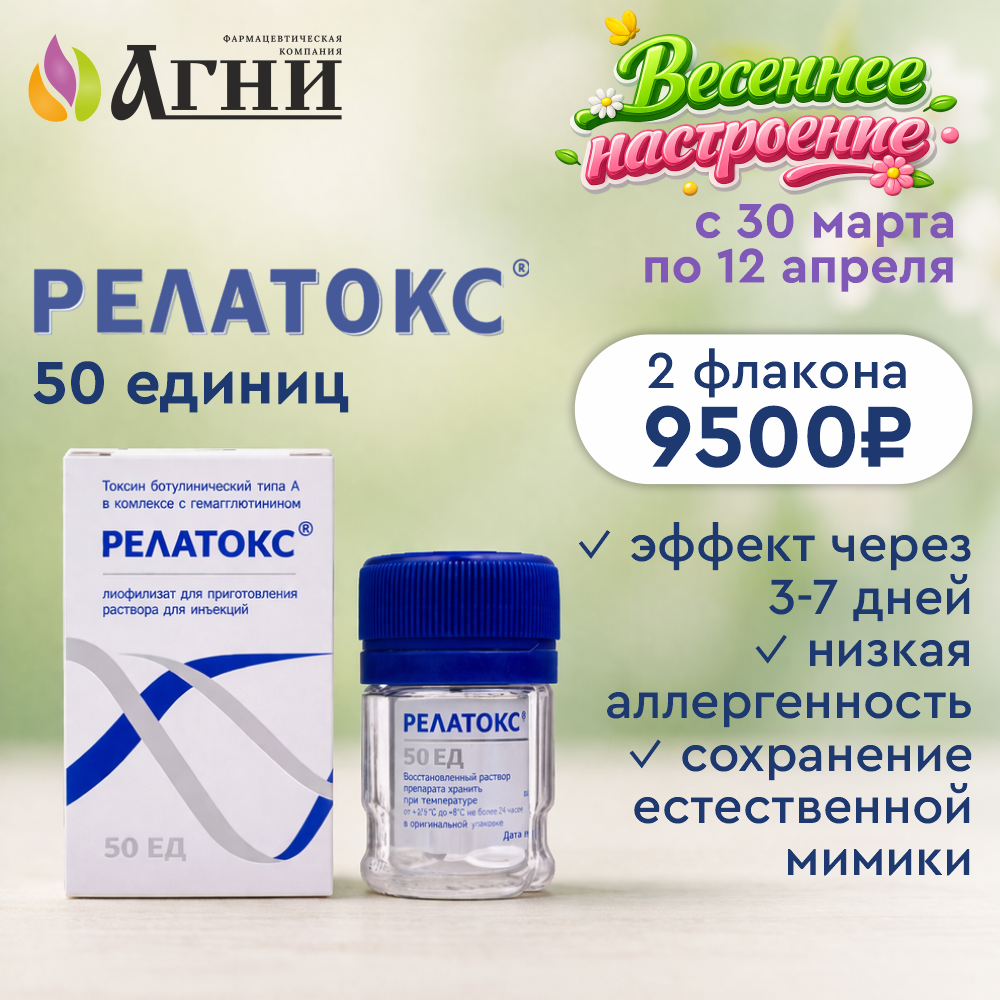 С 30 марта по 12 апреля - специальная цена при покупке 2 упаковок Релатокс 50ед